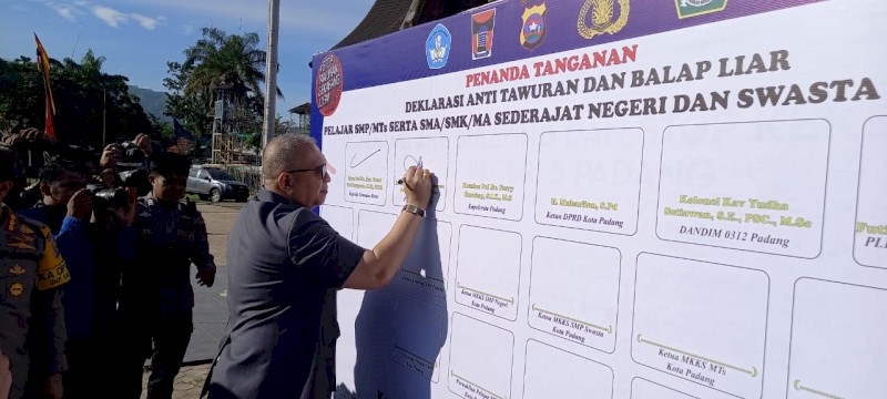 SEPAKAT: Penandatanganan deklarasi anti tawuran dan balap liar.(pemko padang)