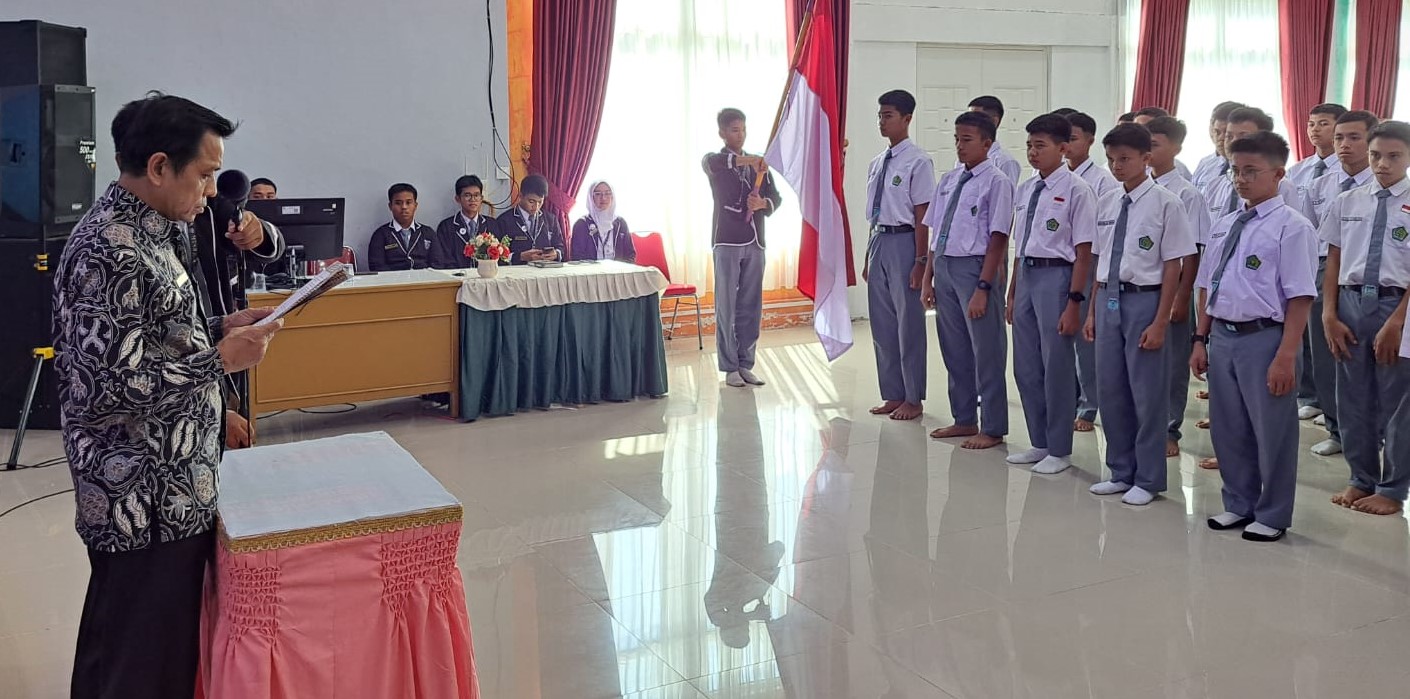 Pengukuhan itu digelar di Aula Abu Bakar Shiddiq kampus madrasah tersebut, Jumat (14/09/2024). Waka sarana Jonismen, pembina OSIM Betty Revita, tim Waka, Syahrul, Roni Ilham ikut menyaksikan pengukuhan itu.