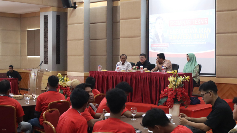 DISKUSI: Kegiatan Diseminasi Teknis yang diselenggarakan yang dihadiri oleh pembudidaya ikan dari Sumatera Barat, di Padang, Minggu (26/1).(pemprov sumbar)