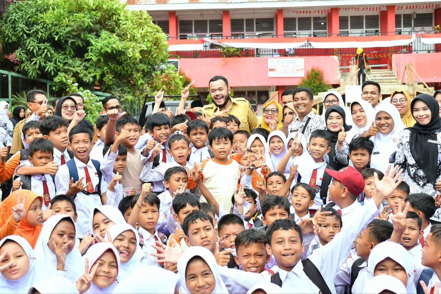 RIANG: Para murid SDN di Jalan Bagindo Aziz Chan No. 4A, Kecamatan Padang Selatan terlihat gembira.(pemko padang)