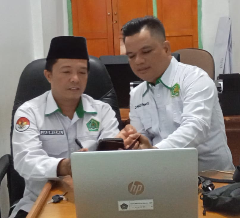SHARING INFORMASI: Perwakilan tim Humas Kemenag Kota Padang, Zarisman Tanjuang memberikan penjelasan kepada Kepala KUA Lubeg, Jasrizal.(haris tj/sindotime)