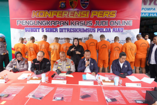DIAMANKAN: Jajaran Polda Riau ketika melakukan konferensi pers pengunkapan kasus judi online di wilayah Riau.(mc riau)