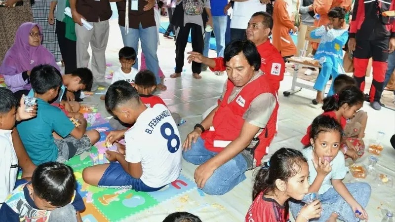 Padang, Sindotime-Posko Evakuasi SDN 02 Cupak Tangah, Kecamatan Pauh, Kota Padang, berubah menjadi ruang pemulihan yang lebih hangat ketika Alfiansyah—lebih dikenal publik sebagai Komeng—hadir sebagai relawan dari Palang Merah Indonesia (PMI) Pusat. Komedian senior yang kini menjabat sebagai Anggota DPD RI tersebut ikut terjun langsung memberikan dukungan bagi masyarakat yang terdampak banjir bandang dan longsor.