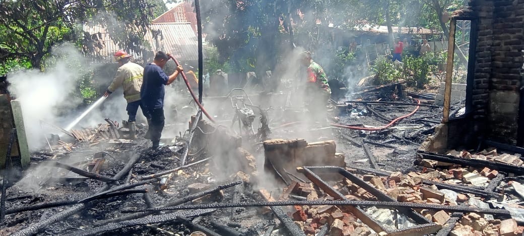 Rumah berukuran 6 x 7 meter itu tak lagi menyisakan apa pun—seluruh bangunan rata dengan tanah, empat sepeda motor musnah, dan semua barang milik penghuni lenyap ditelan api. Meski demikian, kejadian yang begitu cepat dan mengejutkan itu tidak menimbulkan korban luka ataupun jiwa.