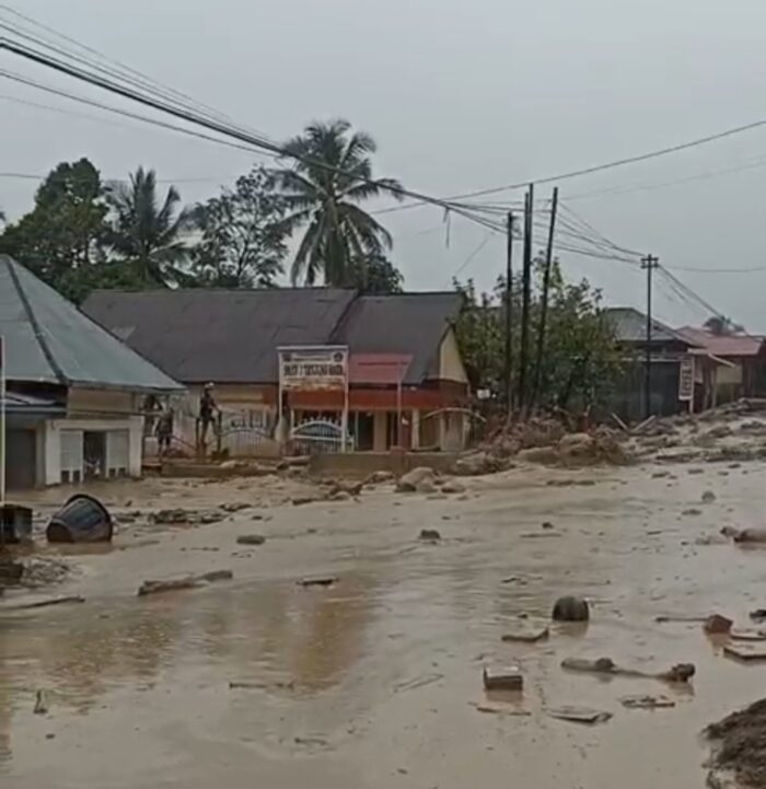 Agam, Sindotime—Hujan berintensitas tinggi yang mengguyur kawasan Maninjau, Kecamatan Tanjungraya, Kabupaten Agam, pada Kamis siang (25/12) kembali memicu bencana banjir bandang. Debit Sungai Batang Muaro Pisang meningkat tajam hingga meluap dan menghantam kawasan Jorong Pasa Maninjau, Nagari Maninjau, membawa lumpur tebal, bongkahan batu, serta potongan kayu berukuran besar.