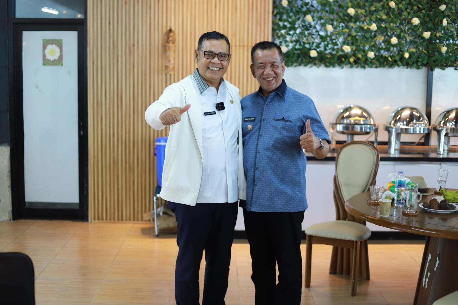 Rombongan Bupati Pesisir Selatan, Rusma Yul Anwar disambut Bupati Solok, Epiyardi Asda didampingi sejumlah kepala perangkat daerah bertempat di Cambai Hill, Kabupaten Solok.