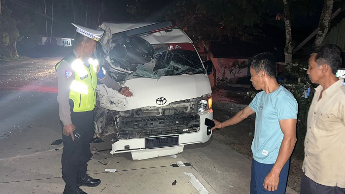 “Pada saat bersamaan, dari arah berlawanan melintas truk Hino. Karena jarak yang sudah terlalu dekat, tabrakan tidak dapat dihindari. Toyota Hiace menabrak bagian samping truk Hino di jalur yang seharusnya dilalui truk tersebut,” ujar Iptu Agung, Rabu malam.