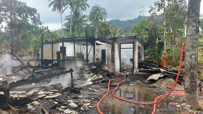 Tanah Datar, Sindotime—Kebakaran melanda satu unit hunian semi permanen di Jorong Duo Koto, Nagari Guguak Malalo, Kecamatan Batipuh Selatan, Kabupaten Tanah Datar, Sabtu siang (31/1).
