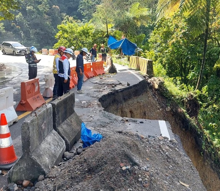“Penyempitan jalan semakin parah karena bagian yang terban terus terkikis. Untuk sementara, kendaraan hanya bisa melintas satu jalur,” ungkap AKP Pifzen Finot saat dikonfirmasi, Sabtu (7/2).