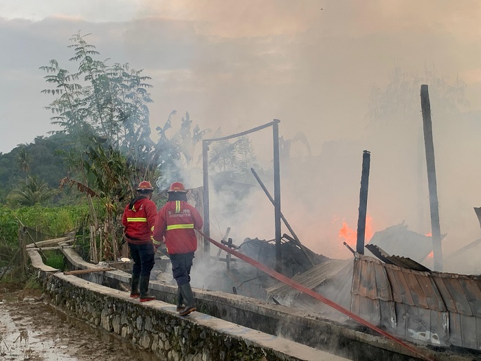 Menurutnya, api menghanguskan satu rumah permanen dengan luas kurang lebih 100 meter persegi, satu bangunan warung, serta satu kendaraan roda empat yang terparkir di sekitar lokasi kejadian.