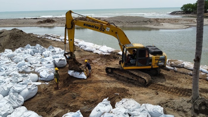 Tebing Muaroulakan Dipasang Geobag, Cegah Penyumbatan Muara