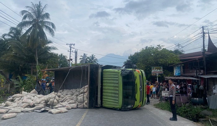 SINDOTIME.COM—Sebuah kecelakaan lalu lintas tunggal terjadi di kawasan Tugu Rang Bagak, Nagari Cupak, Kecamatan Gunung Talang, Kabupaten Solok, pada Kamis sore (5/3) sekitar pukul 17.30 WIB. Insiden tersebut melibatkan satu unit dump truk bernomor polisi BM 8337 KU yang dilaporkan kehilangan kendali hingga akhirnya terbalik di badan jalan.