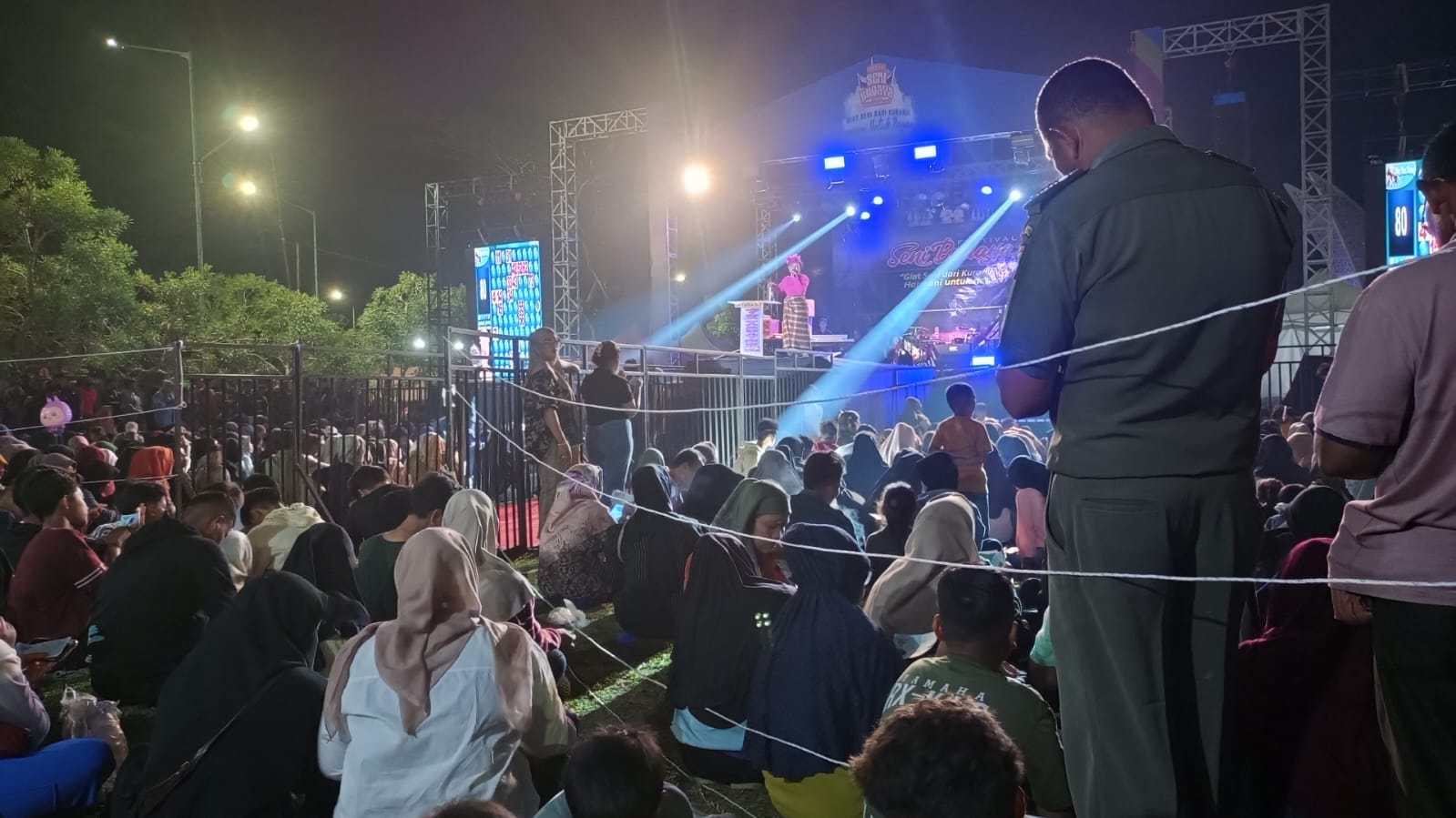 SEMARAK: Ribuan warga ikut bermain KIM dalam Festival Seni Budaya Tahun 2025 bertajuk “Giat Seni dari Kuranji, Harmoni untuk Negeri” yang berlangsung di Komplek Perkantoran Balaikota Air Pacah, Jalan Bagindo Azis Chan, Kecamatan Kuranji, pada Sabtu malam (19/7).(zoe/sindotime)