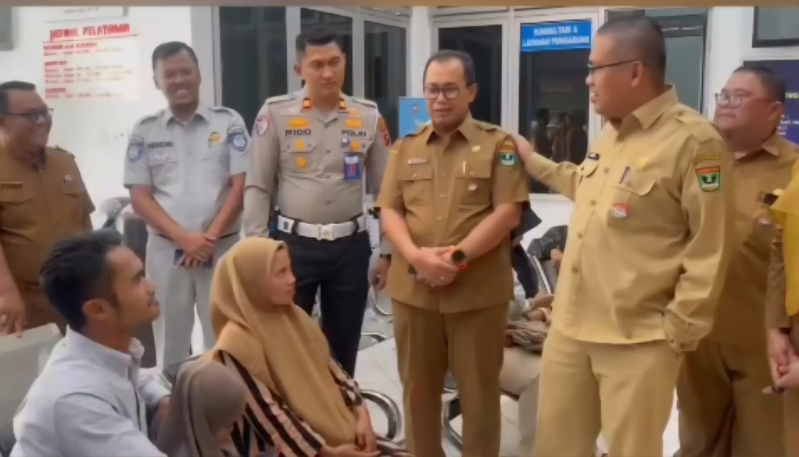 DUKUNGAN: Sekdaprov Sumbar, Arry Yuswandi ketika mengunjungi UPTD PPD Samsat Arosuka beberapa waktu lalu.(samsat arosuka)