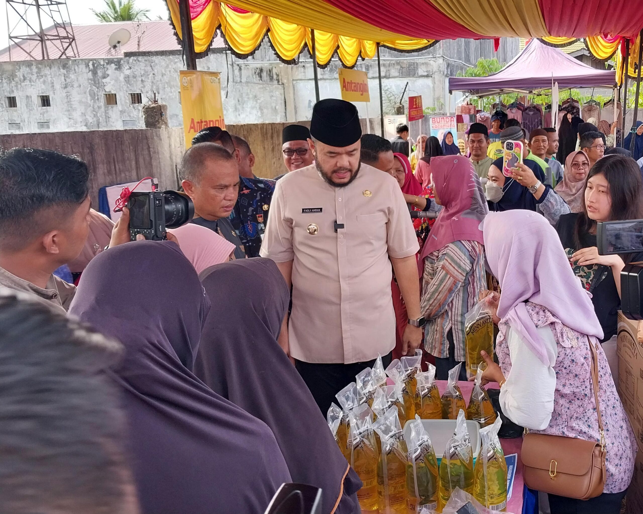 TURUN LANGSUNG: Wali Kota Padang, Fadly Amran ketika meninjau pasar murah yang digelar Pemko Padang di di Jalan Asra, RT 01/RW 04, Kelurahan Dadok Tunggul Hitam.(pemko padang)