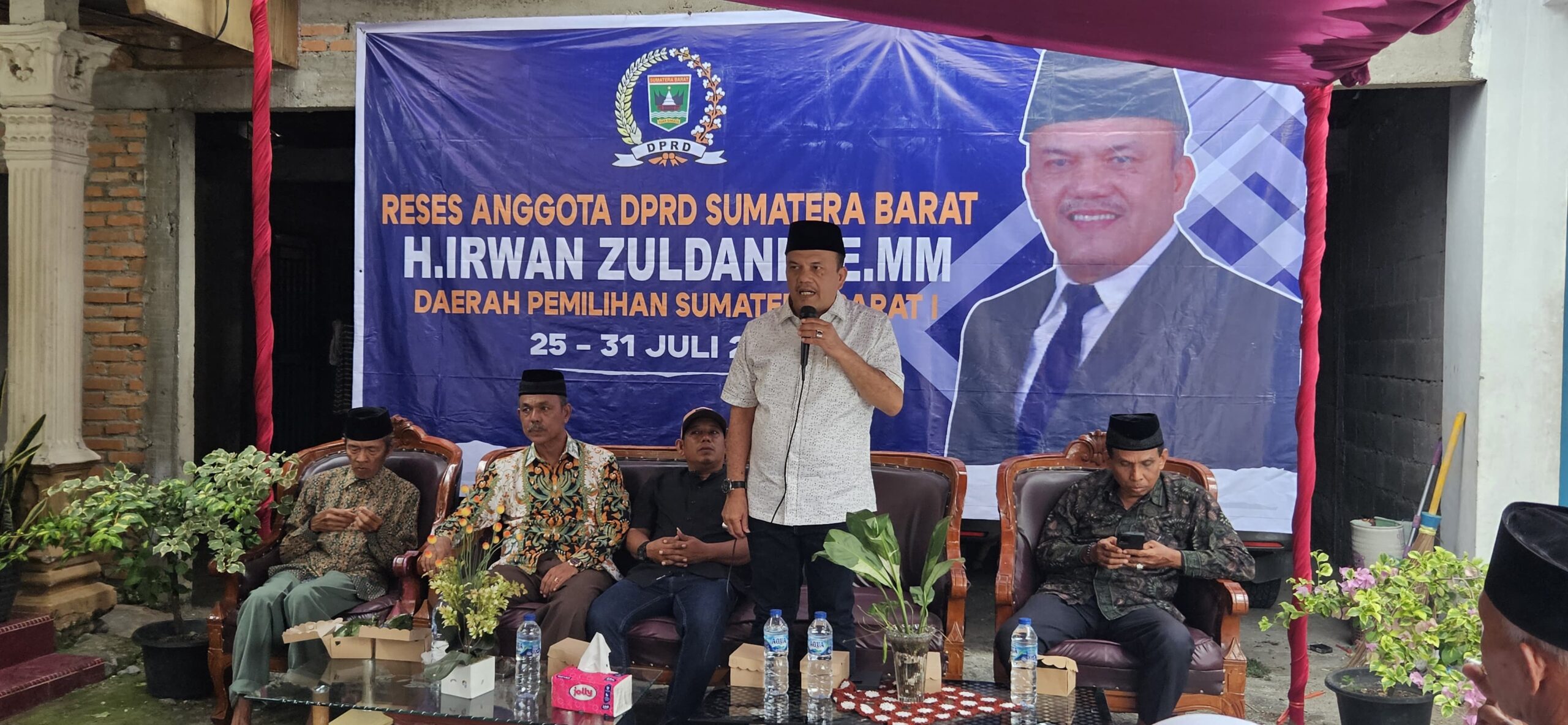 Padang, Sindotime-Anggota Komisi III DPRD Sumbar, Irwan Zuldani melakukan pertemuan dengan masyarakat Korong Gadang RT 03/RW 02 dalam kegiatan reses perorangan masa sidang III Tahun 2025 yang dilaksanakan Jumat (25/7).