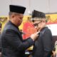 Ansharullah, menerima penghargaan sebagai Tokoh Masyarakat Kota Padang di sela Rapat Paripurna Hari Jadi