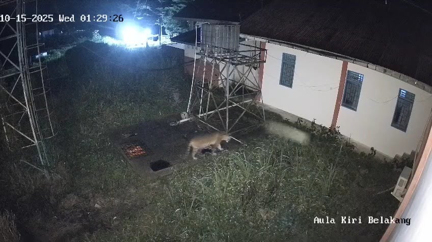 Terjebak : Tangkapan layar CCTV BRIN Agam yang memantau seekor harimau sumatera yang terjebak di area tersebut pada Kamis (16/10).(bksda)