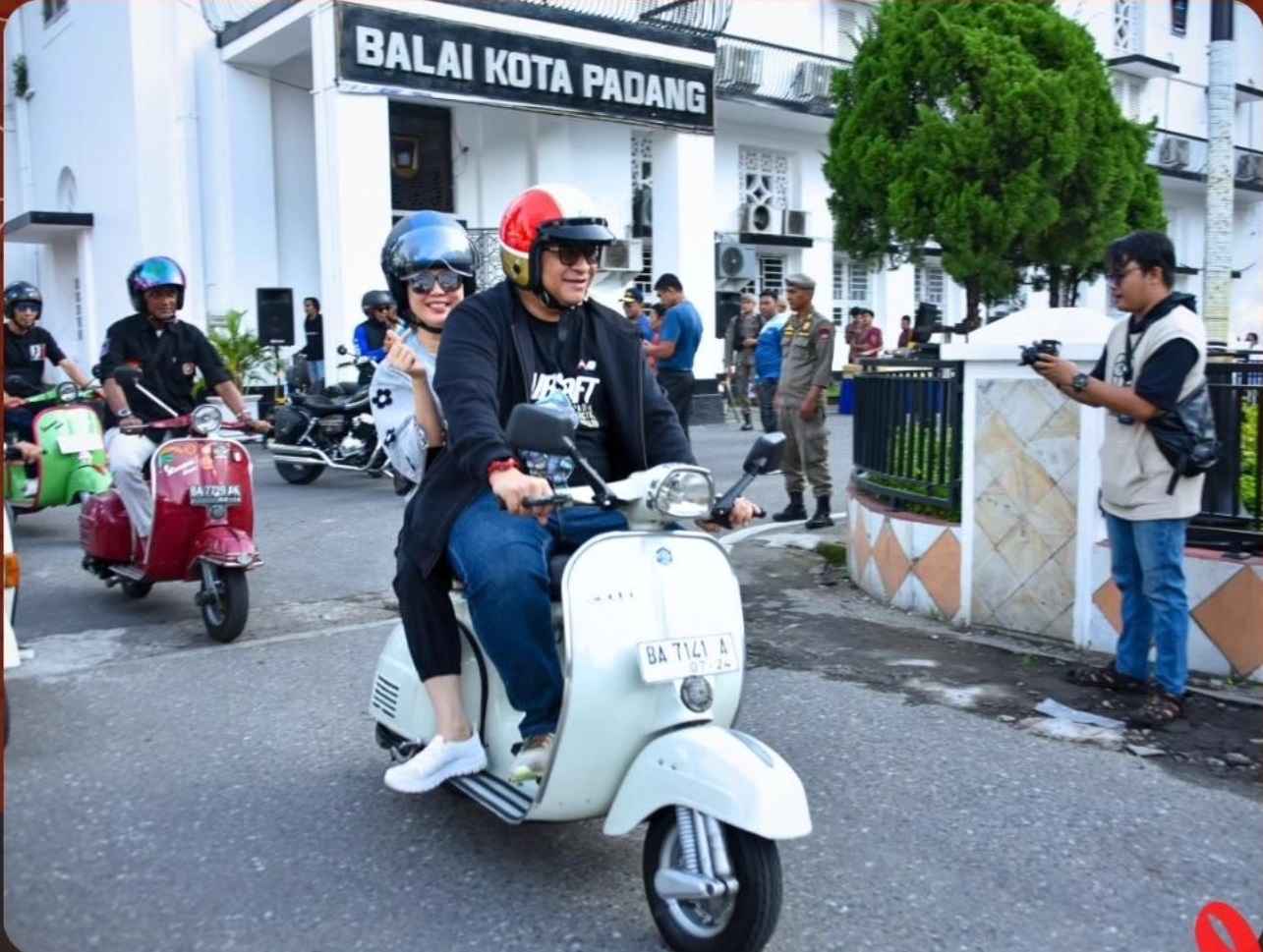 KLASIK: Pj Wali Kota Padang, Andree Algamar mengikuti acara “Padang Bervespa” pada Minggu (29/12).(pemko padang)