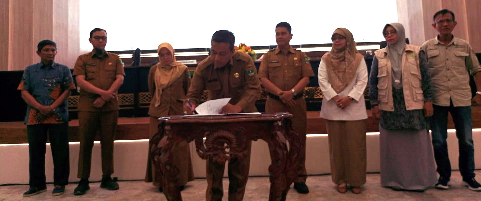 SEPAKAT: Kepala DLH Sumbar, Tasliatul Fuaddi melakukan penandatanganan komitmen bersama dengan para peserta.(zoe/sindotime)