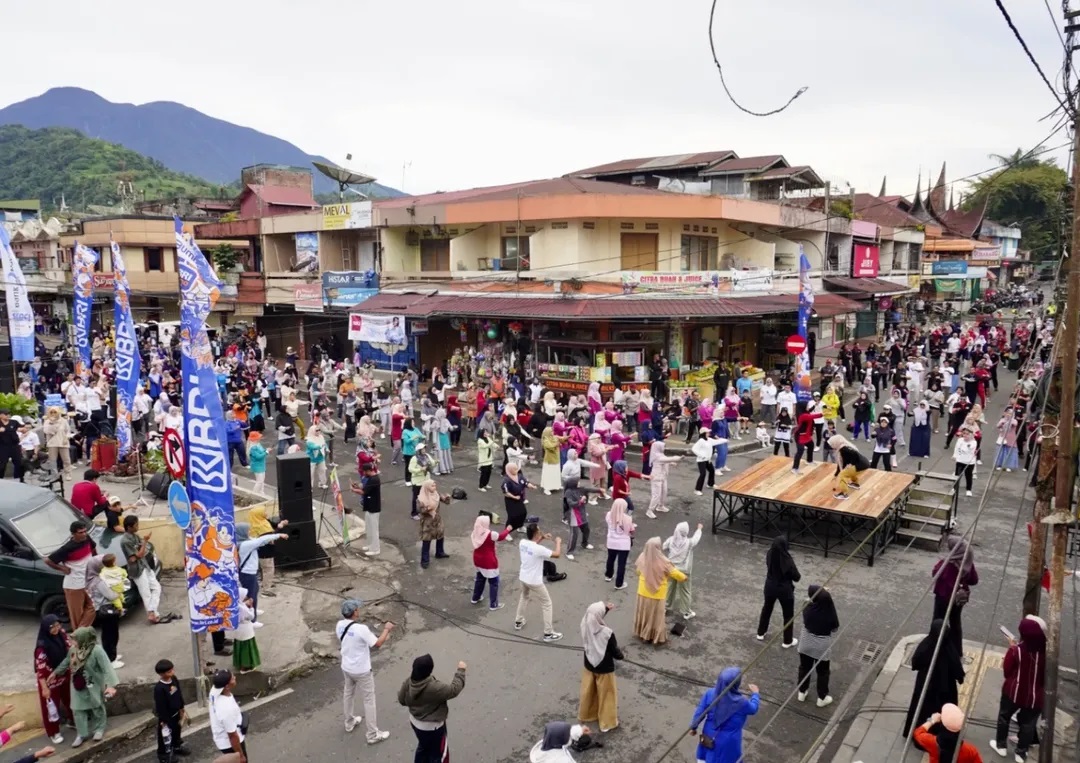 semakin semarak dengan pelaksanaan senam bersama di Simpang Empat Pasar yang