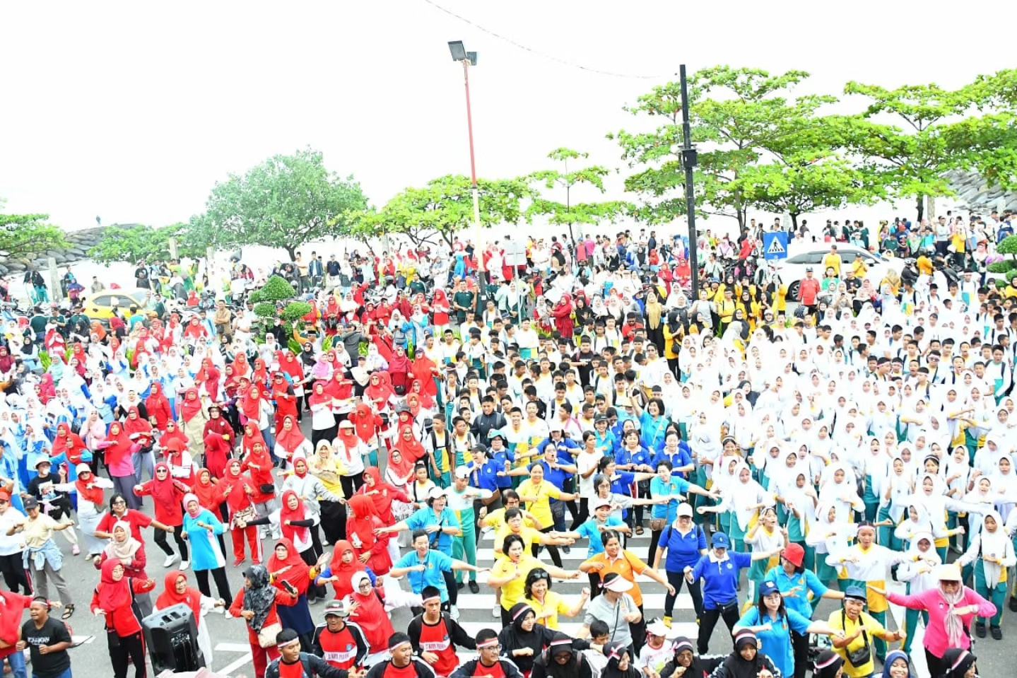 SENAM MASAL: Warga Kota Padang melakukan senam masal sebelum menggelar aksi bersih-bersih pantai di kawasan wisata Pantai Padang.(pemko padang)
