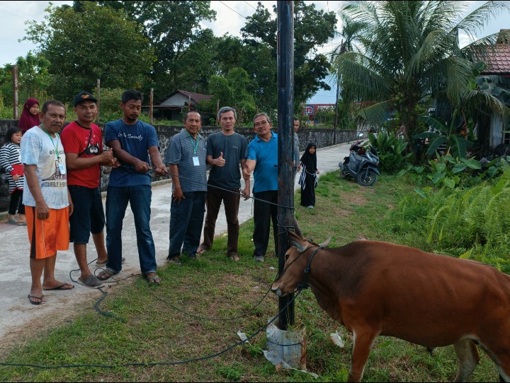 Sumbangan satu ekor sapi kurban ini wujud kepedulian keluarga besar Padang Ekspres dan Graindo Padang terhadap lingkungan perusahaan.