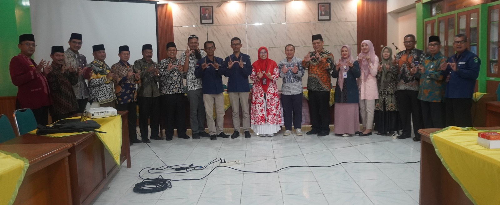 SAMAKAN PERSEPSI: Para peserta Rakor dan Sinkronisasi Program Padang sebagai Kota Wakaf foto bersama di Aula Lantai 2 Kantor Kemenag Kota Padang pada Kamis (5/9/2024).(harris tj/sindotime)