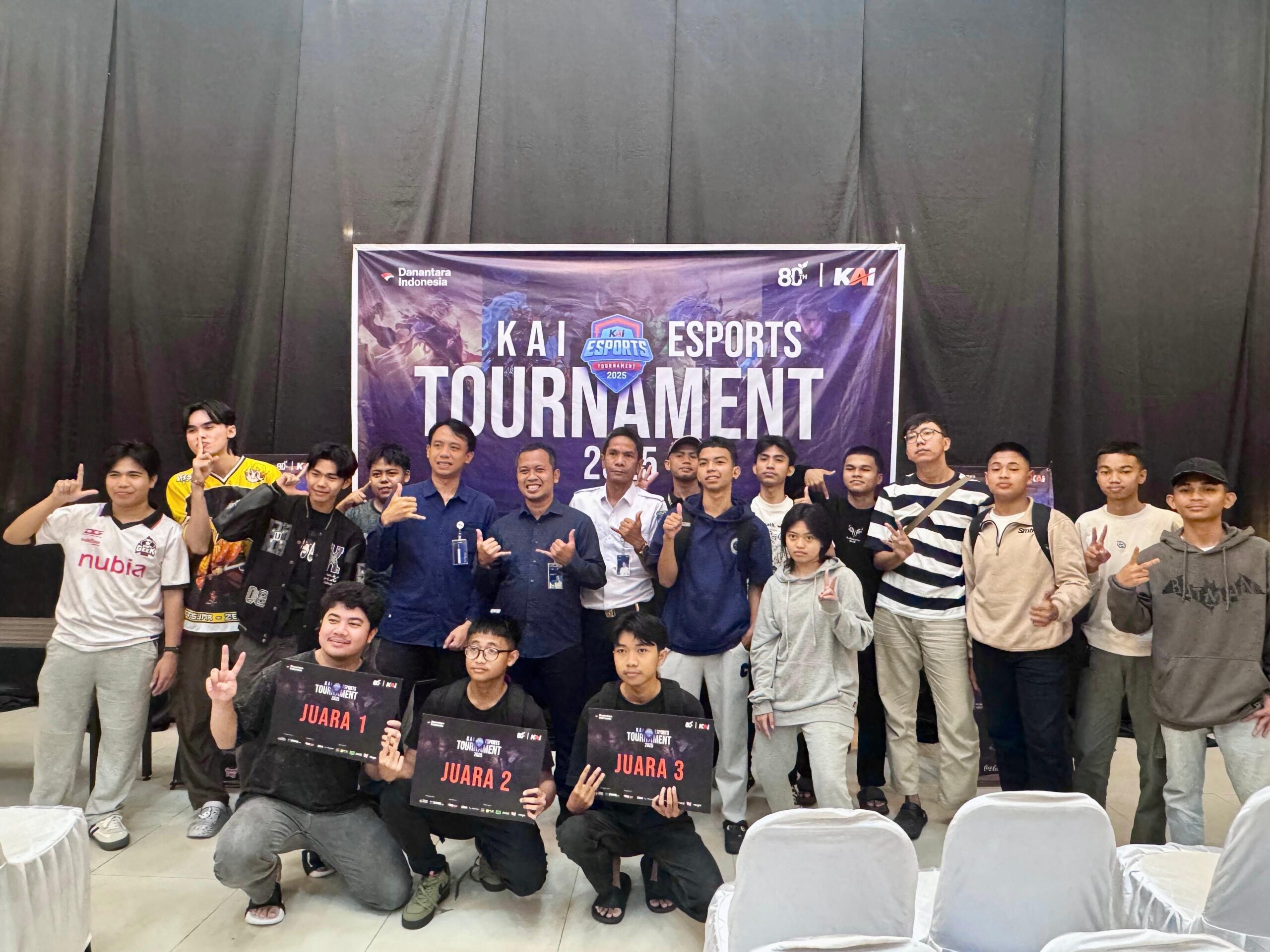REWARD: Penyerahan penghargaan kepada pemenang turnamen E-Sport MLBB yang digelar dalam rangka memperingati HUT ke-80 KAI.(pt kai divre ii)