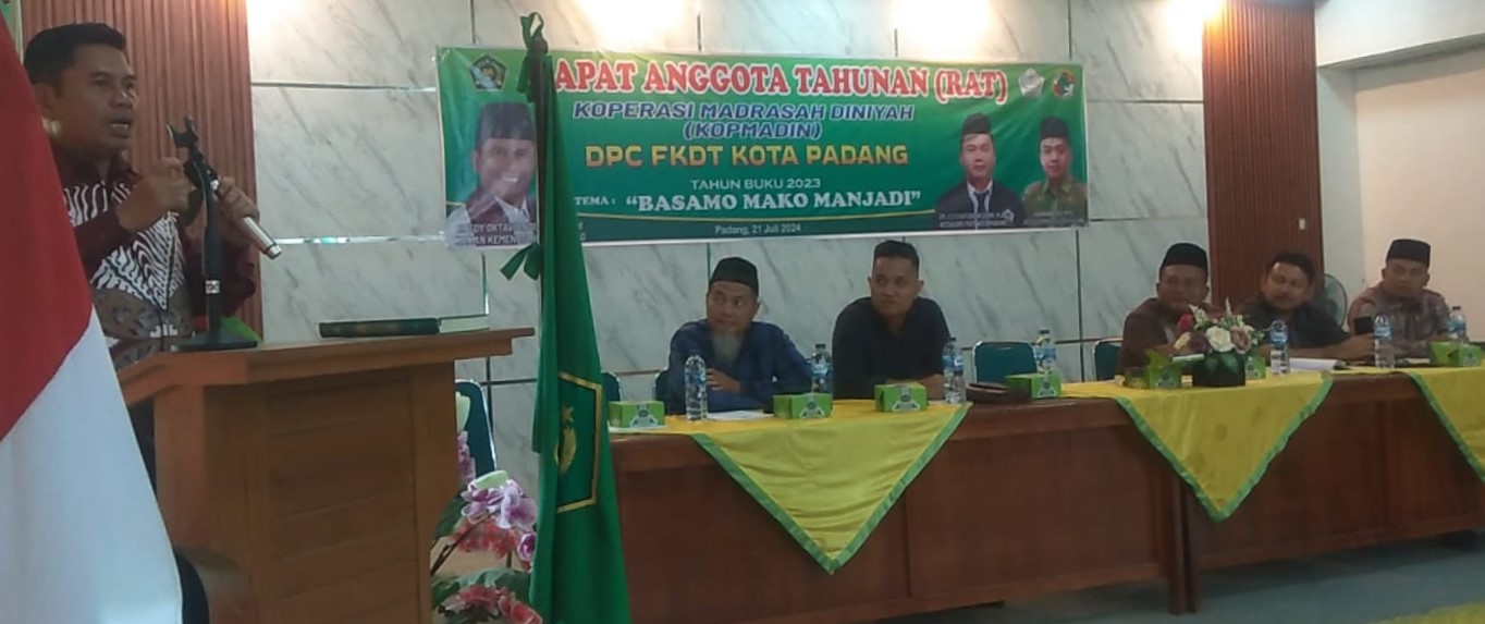 MASUKAN: DPC–FKDT Kota Padang saat mengelar RAT Kopmadin DPC FKDT Kota Padang tahun buku 2023 tema “Basamo Mako Manjadi”, di aula Lt. 2 Kemenag Kota Padang pada Minggu (21/7/2024).