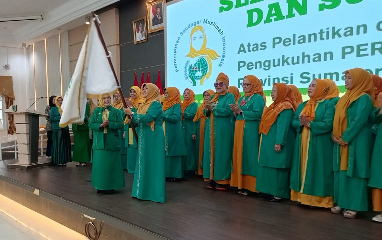 PENUH HARAPAN: Ketum DPP Persami, Siti Nur Azizah saat melantik dan mengukuhkan DPW Persami Sumbar masa bakti 2025-2030 di Aula Gubernur Sumbar, Sabtu (19/7).(zoe/sindotime)