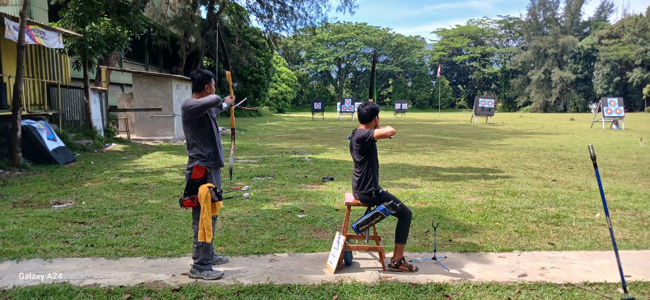 BERSEMANGAT: Atlet panahan Perpanas Sumbar terlihat serius menjalani latihan jelang turun di Peparnas XVII yang akan dilaksanakan di Solo, Jawa Tengah.(sumber: tim peparnas sumbar)