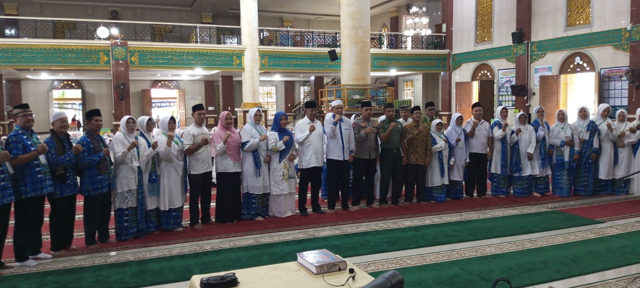 RESMI: Ketua BKMT Sumbar, Abdul Aziz, SP, MM saat mengukuhkan sekaligus melantik PD BKMT Pessel periode 2022-2027 (SK revisi) di Masjid Agung Akbar Pessel, Rabu (10/7/2024).