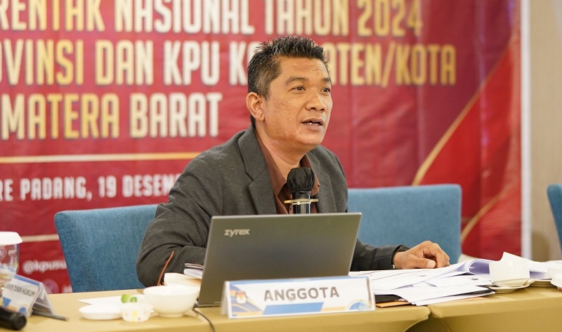 KETERANGAN: Ketua Divisi Hukum dan Pengawasan KPU Sumbar, Hamdan saat pemaparan kepada awak media.(kpu sumbar)