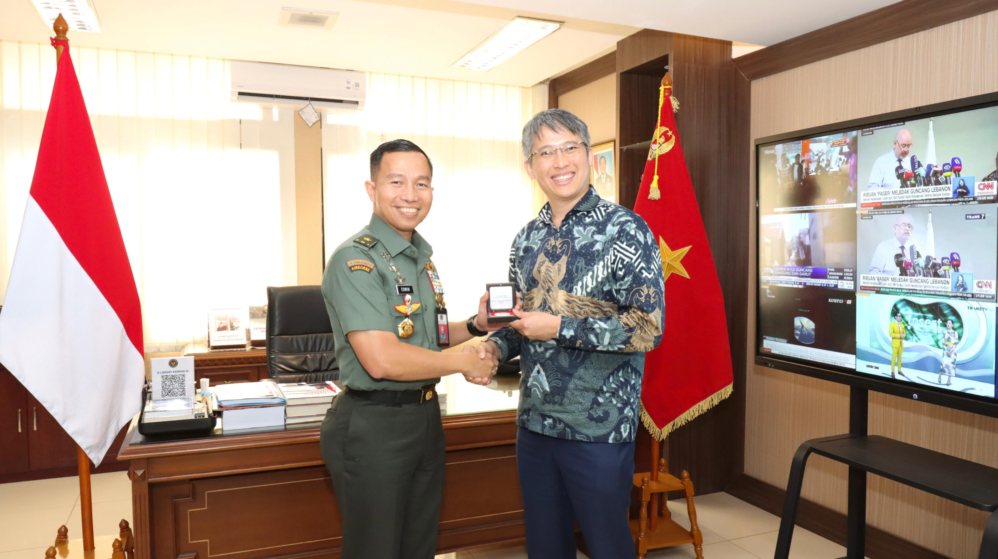 Jakarta, Sindotime – Kepala Grup Komunikasi Kementerian Pertahanan Singapura (Group Chief of The Singapore Ministry of Defence Communications/GCMC) Tn. Yang Si Cheng beserta delegasi berkunjung ke Karo Humas Setjen Kemhan Brigjen TNI Edwin Adrian Sumantha, Rabu (18/9).