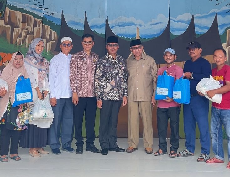 menyerahkan pemberikan paket Ramadhan di SMAN 8 Padang, Kamis (20/3).