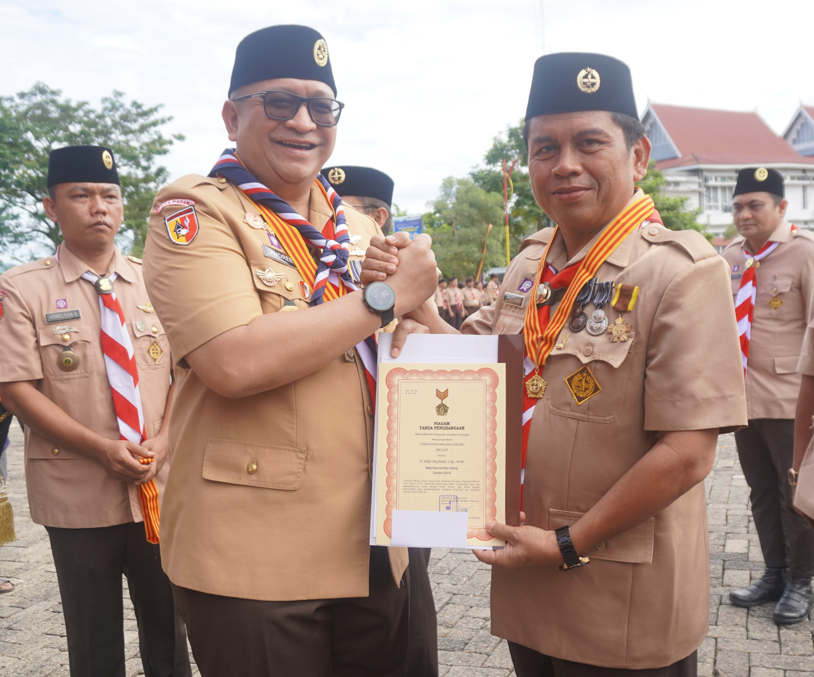 Padang, Sindotime – Kepala Kantor Kementerian Agama Kota Padang, H. Edy Oktafiandi, menerima tanda penghargaan Lencana Melati dari Kwartir Nasional Gerakan Pramuka. Penghargaan tersebut disematkan langsung oleh Penjabat (Pj) Walikota Padang, H. Adree H Algamar, dalam upacara Akbar peringatan Hari Pramuka ke-63 yang digelar dilapangan Apeksi Balaikota Padang di Aie Pacah, Sabtu (21/09/2024).