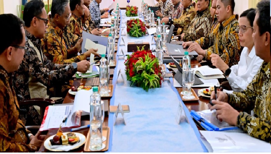 DIBAHAS: Presiden RI, Prabowo Subianto saat memimpin ratas di Istana Merdeka, Jakarta, pada Senin, (30/12). Hadir pada kesempatan itu sejumlah menteri Kabinet Merah Putih.(bpmi sekpres)