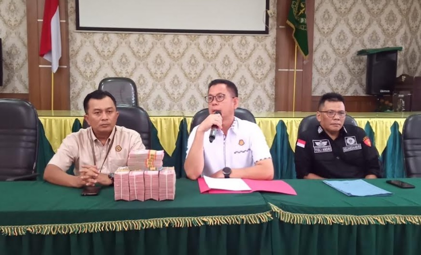 Padang, Aliansyah memperlihatkan barang bukti tipikor senilai Rp.455,4 juta dari