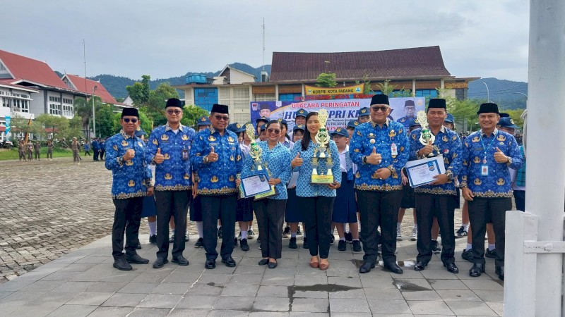 BIKIN BANGGA: Para pemenang mendapatkan penghargaan saat upacara peringatan HUT ke-53 Korpri yang dilaksanakan di Lapangan Upacara Kantor Balaikota Aia Pacah, pada Jumat (29/11).(pemko padang)