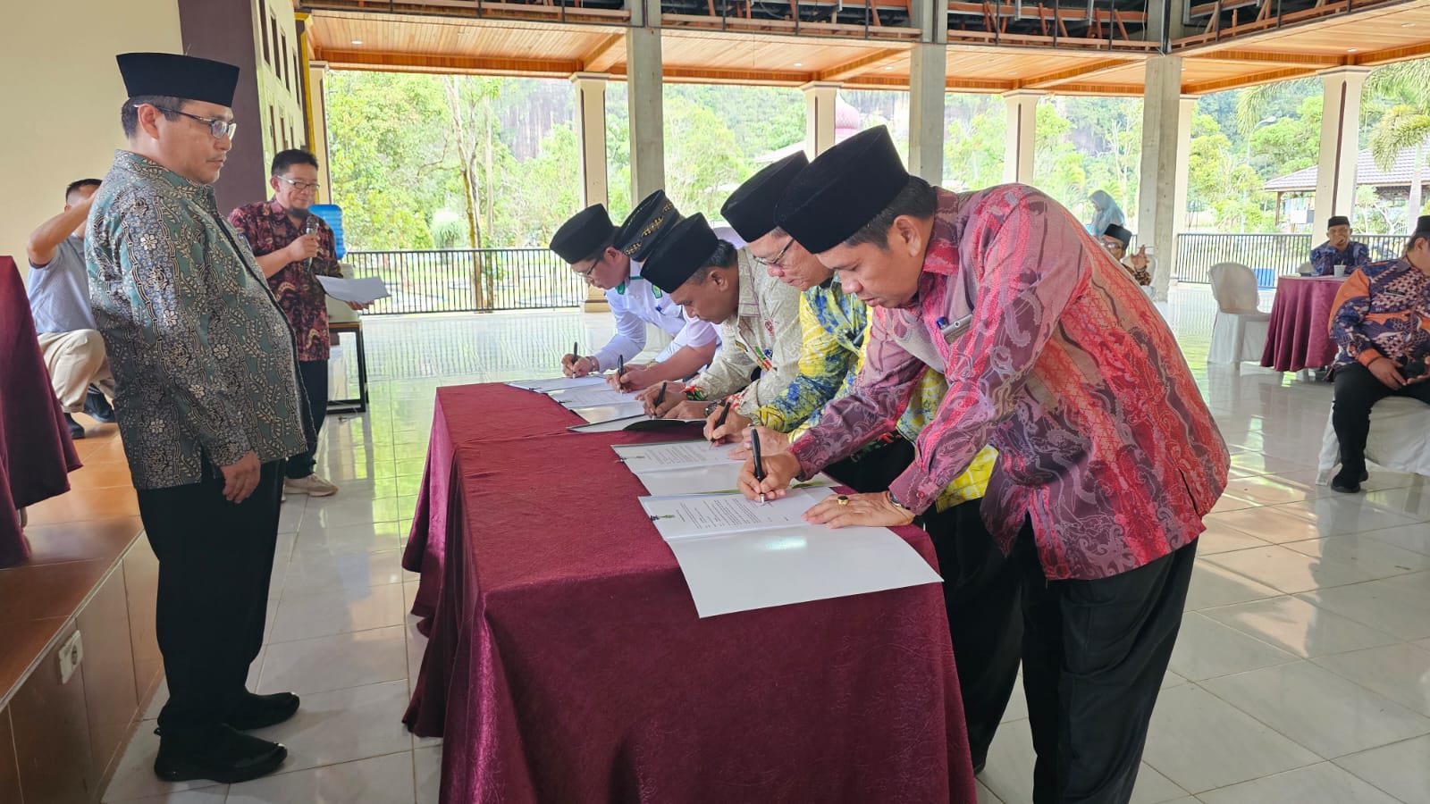 SEPAKAT: Penandatanganan Perkin dan DIPA 2025 disaksikan Kakanwil Kemenang Sumbar, Mahyudin.(harris tj/sindotime)