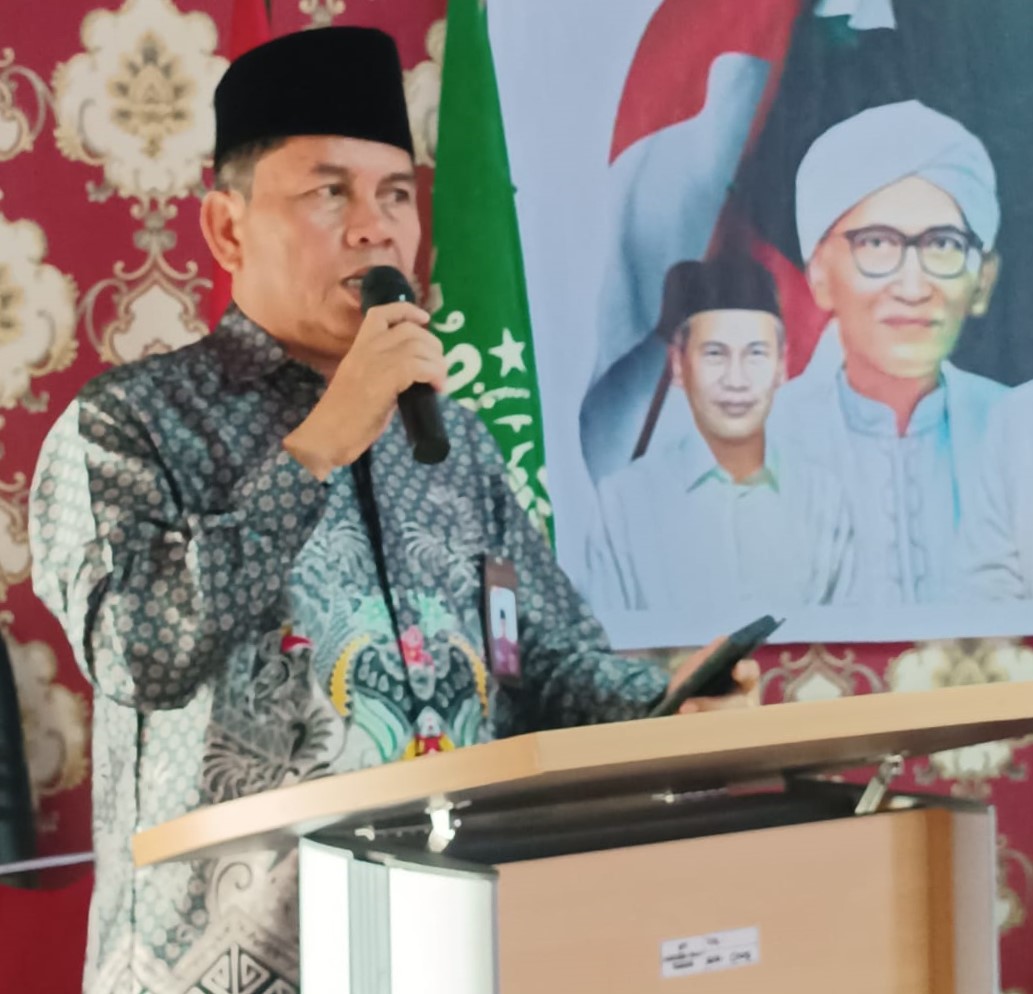 ARAHAN: Kakan Kemenag Kota Padang, Edy Oktafiandi saat menghadiri pelantikan MWC NU se-Kota Padang sekaligus Konferensi PCNU Kota Padang, di Asrama Haji Parupuk Tabing Kota Padang, Sabtu (2/11).(harris tj/sindotime)