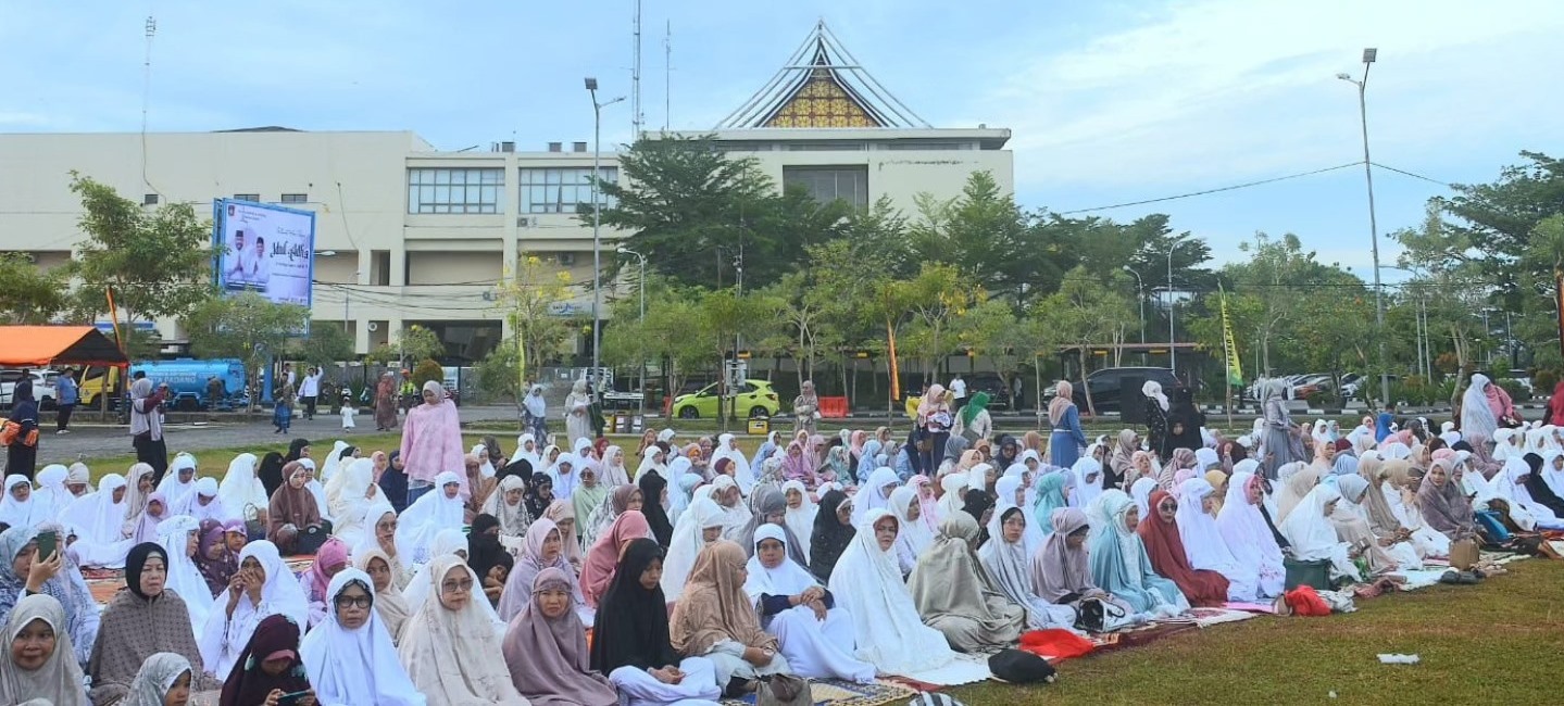 yang memadati Lapangan Balai Kota Aie Pacah. Mereka berkumpul untuk menunaikan