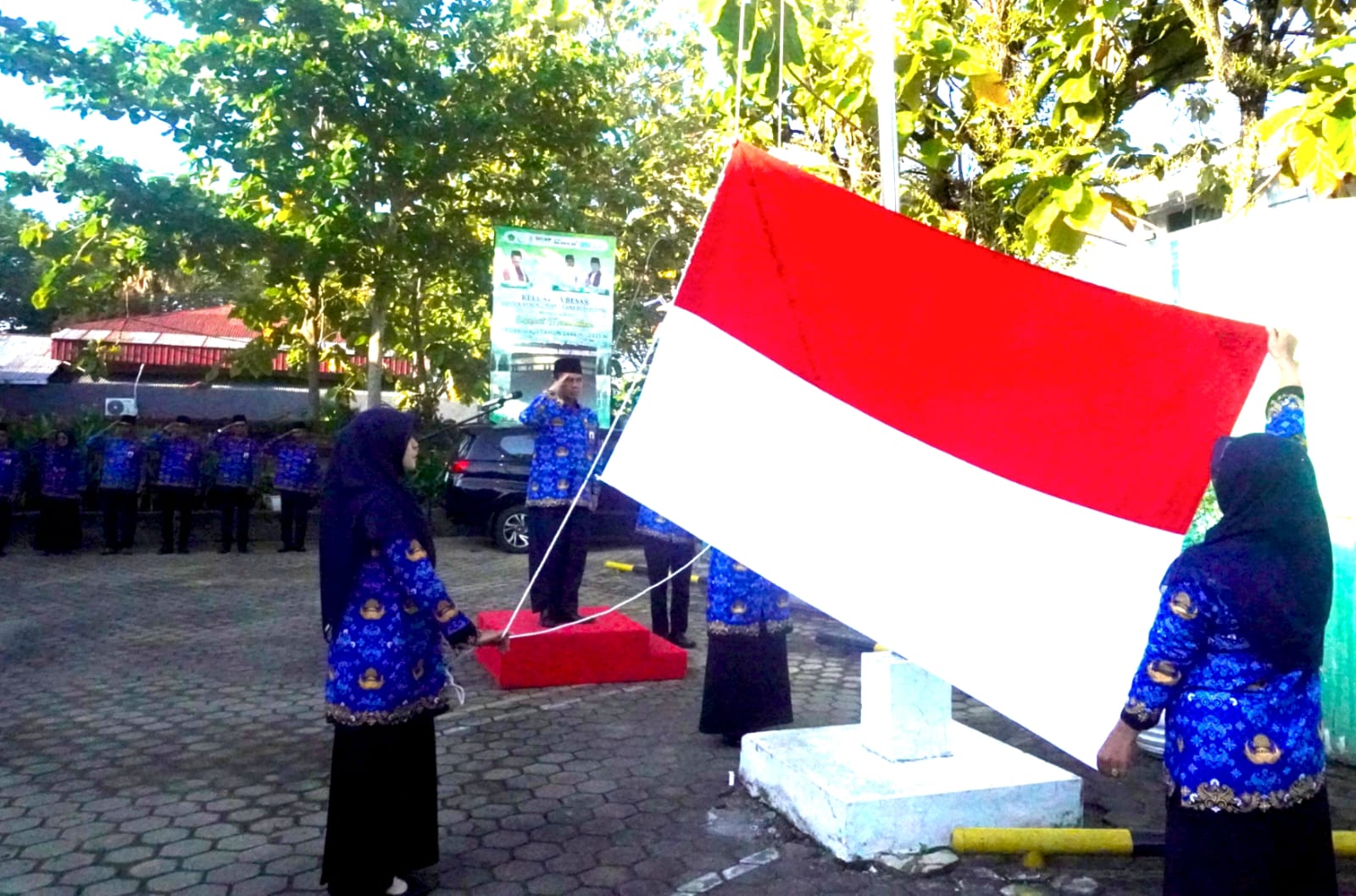 KHIDMAT: Suasana peringatan Harkitnas ke-117 di halaman kantor Kemenag Kota Padang, Selasa (20/5).(haris tj/sindotime)