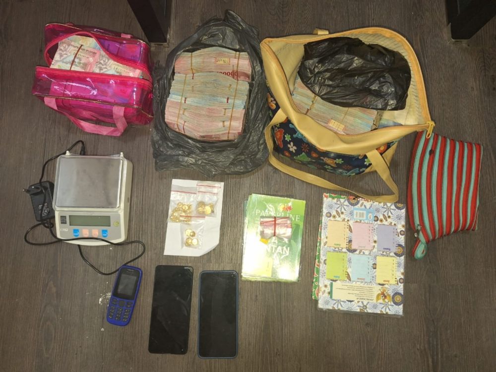 beserta sejumlah barang bukti, termasuk emas ilegal, uang tunai ratusan juta