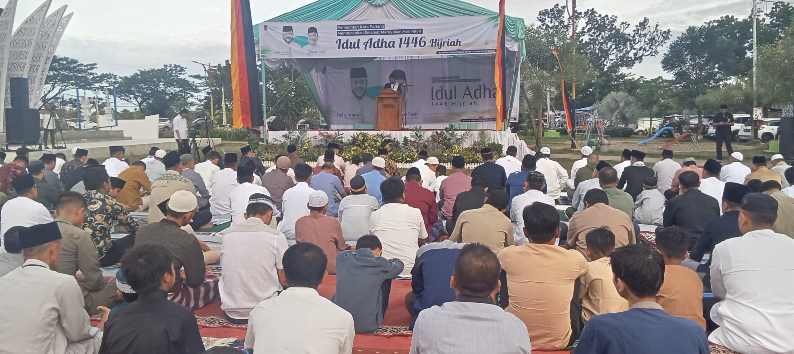 KHIDMAT: Suasana pelaksanaan Salat Idul Adha 1446 H di Lapangan Apeksi Balaikota Aie Pacah.(Haris Tj/sindotime)