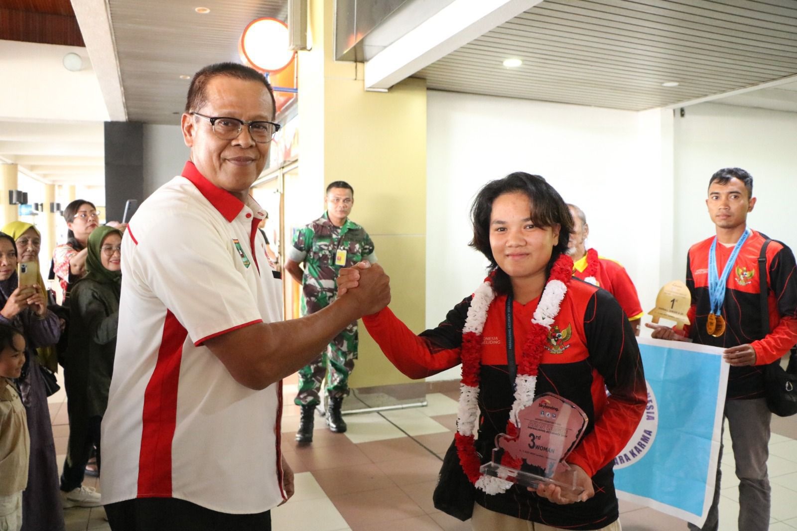 Mereka di sambut langsung oleh Sekretaris Umum Komite Olahraga Nasional Indonesia (KONI)