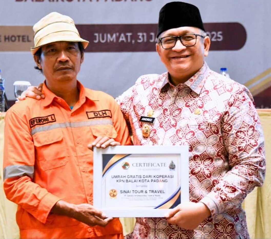 REWARD: Petugas kebersihan DLH Padang saat menerima hadiah umrah.(pemko padang)