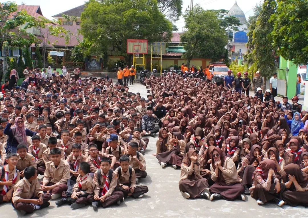 simulasi evakuasi gempa bumi yang melibatkan ratusan siswa, guru, serta