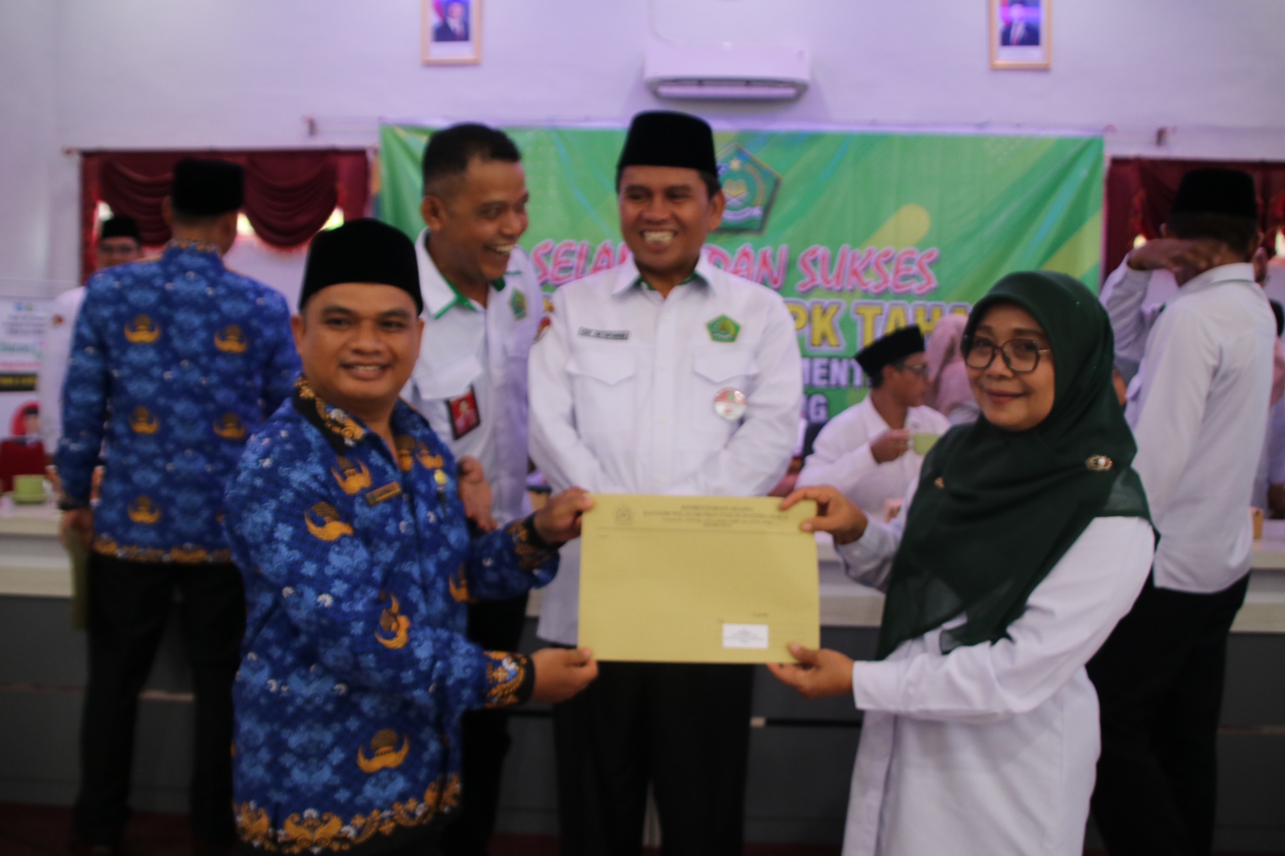 DISERAHKAN: Kakan Kemenag Kota Padang, Edy Oktafiandi menyerahkan SK ASN PPPK kepada salah seorang ASN PPPK yang baru saja dilantik.(haris tj/sindotime)